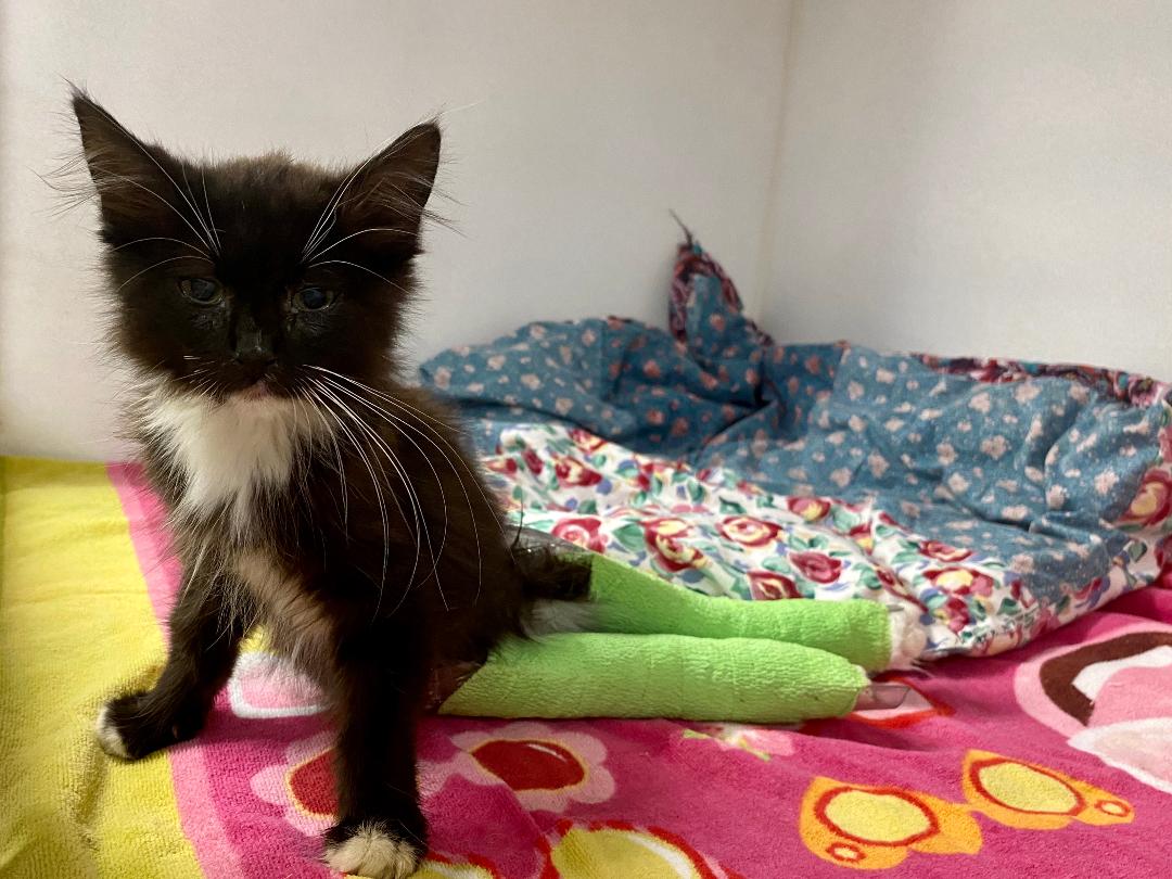 In early August, little Franklin of Lamar was attacked by a dog and thrown against a wall resulting in bilateral femur fractures and other injuries. Fortunately, he was rescued by a good samaritan and taken to a veterinarian who splinted his hind legs to stabilize the fractures . Unfortunately, surgery was delayed due to the surgeon’s illness. On August 8th, Franklin was transferred to our shelter from the Second Chance Animal Rescue in Lamar. We are grateful to both the Lamar Animal Medical Center for their initial treatment of Franklin and to the Second Chance Animal Rescue Colorado for entrusting us with his care and generously contributing to his continuing medical treatment. And now we are asking our kind supporters to help offset the cost of Franklin’s medical care, approximately $3000, to include hernia surgery at Aspenwood Veterinary Hospital and pinning of his femur fractures by Colorado Canine Orthopedics . Your generous support will help give Franklin, this beautiful 9 week old kitten, a well-earned opportunity to live a long and healthy life in a loving permanent home.